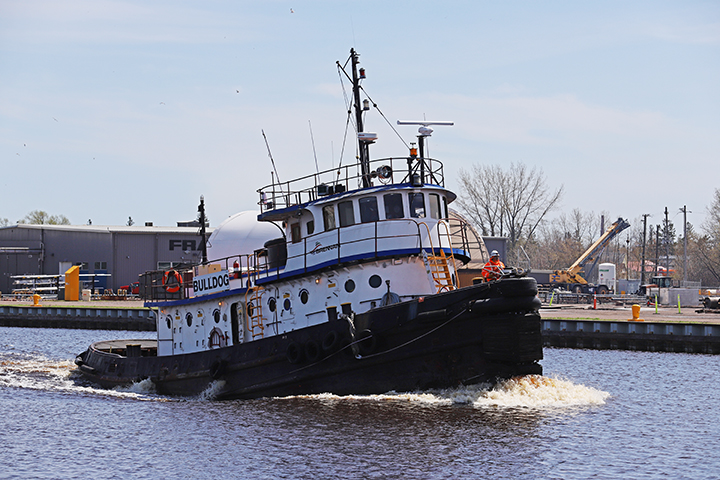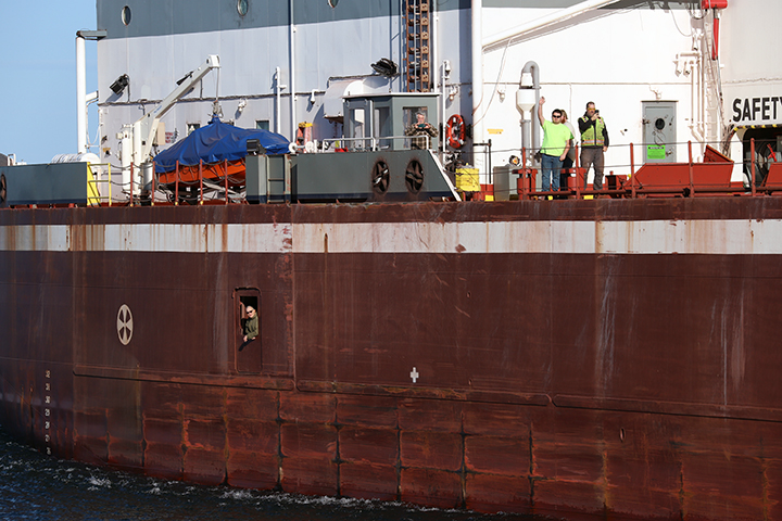 The bow nosing its way into the canal. The upper bow shape is the only one