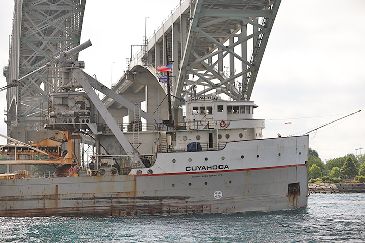 Cuyahoga sailing beneath the Blue Water Bridge.